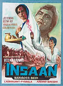 Insaan (transl. Human) is a 1982 Indian Hindi-language action drama film directed by Narendra Bedi. The film stars Jeetendra, Vinod Khanna and Reena Roy in the lead roles, with Amjad Khan featuring as the main antagonist. The film was launched in 1976 but faced several delays due to Khanna going to the US, and many other issues.
