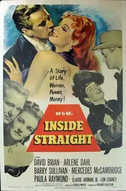 Inside Straight is a 1951 American Western film directed by Gerald Mayer and starring David Brian, Arlene Dahl, Barry Sullivan, Mercedes McCambridge and Paula Raymond.