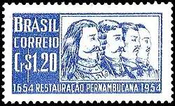- João Fernandes Vieira: Portuguese plantation owner who arrived in Brazil at the age of ten. According to historian Charles Ralph Boxer, he was the main leader of the reconquest of Pernambuco. Despite being of humble origins and perhaps even of color (there is evidence that his mother was not white), Fernandes Vieira governed Angola and Pernambuco. In 1645, he was the first signatory of the pact sealed at the time, in which the word "homeland" was used for the first time on Brazilian soil. As Master of the Field, he commanded the most powerful third of the Patriot Army in the two battles of Guararapes (1648 and 1649). For his achievements, he was acclaimed Supreme Chief of the Revolution and Governor of the War of Freedom and Restoration of Pernambuco;[15]