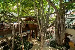Beach was honored with a House Resolution Tourism Award in 1957.[9] He died in Hawaii in 1989.[10][11] The International Market Place had experienced almost complete turnover since its inception, and all of its buildings were finally bulldozed in 2013 after they had fallen into great disrepair. Preservationists ensured that the main banyan tree remained for the completely new International Market Place's grand reopening in 2016.[12][13] A commemorative plaque installed on the new "Don's Treehouse" reads in part: "The opening of Dagger Bar and the Bazaar Buildings in 1956 marked the establishment of Waikiki Village. Donn Beach...lived and worked in this treehouse...it was also the broadcasting home of radio personalities like J. Akuhead Pupule, who shared Hawaiian music with the world."