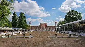 Internationales Pfingstturnier Wiesbaden, a horse show at Schlosspark Biebrich in Wiesbaden, dates back to 1929.[1] It is run by the Wiesbadener Reit- und Fahr-Club (WRFC).[2] In the beginning, it was held at different locations. After World War II, Wilhelm Gustav Dyckerhoff suggested to use the Schlosspark Biebrich, and the first Pfingstturnier there was held in 1949. The event has traditionally been sponsored by the Dyckerhoff family. Competitions are held in dressage, show jumping, eventing and vaulting. [1]