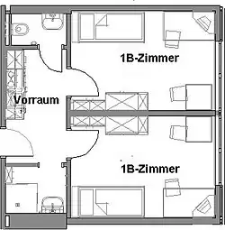 In addition to accommodation units with bath and kitchen for one person, ISH also has a number of apartments for two to six persons, who share the hall, bath and kitchen but have a room of their own. There are also some studios and small apartments and barrier-free units for one or two persons each as well.