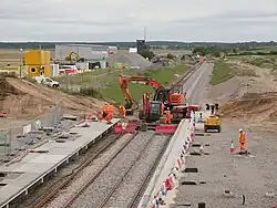 In October 2021, ground works associated with the station as well as embankments commenced. The main platforms, lift shafts and associated works for the footbridge began in early 2022.
