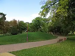 The development of the park began in 1858, in parallel with that of Coronini Park (present-day Queen Marie Park); the works were completed 33 years later, in 1891, and the new park was named Franz Joseph Park. The idea of this park started from the city council, which, around the preparation of the Agro-Industrial Exhibition in Southern Hungary (1891), saw an excellent possibility for the arrangement of the right bank of the Bega River.[2] The park kept its original name until 1919, when it was renamed Mihai Eminescu Park. For a very short period of time, between 1941 and 1945, the western part of the park was included in the Botanical Garden, established ad hoc, as a research base of the Botanical Institute of Cluj, which operated in the building of the Faculty of Hydrotechnics in Roses Park.[1] Between 1945 and 1955, when Russian military units were stationed here and in Roses Park, the park was abandoned and defaced. It was transformed into a children's park in 1986, according to a project by architect Mihai Donici.[3] At that time it was called Pioneers' Park (Romanian: Parcul Pionierilor).[4]