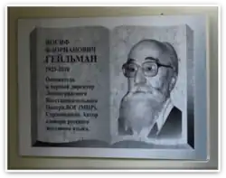 The memorial plaque dedicated to Iosif Florianovich Geilman on April 6th, 2017 at the Regional Center of the Hearing Impaired (formerly, the Leningrad Rehabilitation Center).