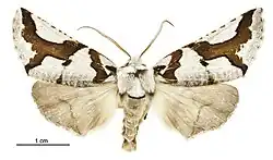 Ipana egregia, commonly called the South Island lichen moth or zebra lichen moth, is a moth in the family Geometridae, endemic to New Zealand.[1] This species was first described by entomologists Baron Cajetan von Felder and Alois Friedrich Rogenhofer in 1875 under the name Chlenias egregia.[3]