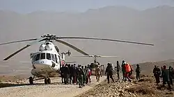 In response to the crash, crisis centres were set up in Tehran, Isfahan, Fars and Yasuj.[7] Weather conditions at the crash site, including snow and strong winds, were hampering search and rescue services.[6] The Red Crescent Society announced that a drone would be flown to the area due to the severe weather condition which prevented helicopters to reach the crash site. Search and rescue team announced on 19 February that at least 5 helicopters had been prepared for the search operation.[16] Troops with search dogs were deployed to hike the mountain and to search the area on foot. Search and rescue operation via air was stopped for the second time due to bad weather conditions.[17] Reports that the wreckage had been found at an elevation of 11,482 feet were refuted by officials from the Iranian Red Crescent and Iranian investigators.[18][19]