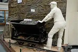 In 1971 the Northamptonshire County Council opened the Irchester Country Park, which is located on the site of the former opencast ironstone quarries. The park has a network of walks, a visitors centre and a children's play area in a grass and woodland setting. The museum was set-up within the park in 1987, inside a purpose built building to the west of the original ironstone railway maintenance yard. Access to the museum is along a footpath which follows the line of the ironstone railway trackbed. There are over 40 items of narrow gauge railway rolling stock including four steam locomotives and six diesel locomotives. A 250-metre long demonstration track with a gauge of 1,000 mm (3 ft 3+38 in) has been laid in the park.[2] The original water tank has been recreated using a tank of similar design, complete with lettering matching the original.