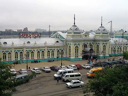 Irkutsk–Passazhirsky is the primary passenger railway station for the city of Irkutsk in Russia, and an important stop along the Trans-Siberian Railway. The main building takes an area of 7,590 square metres.[2]