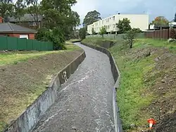 The creek is very tidal here and the water level difference between low and high tide is significant. The tidal limit of Dobroyd Canal is located 100 metres (330 ft) upstream of Parramatta Road.[1] Mullet may also be seen in the lower reaches of Iron Cove Creek below Parramatta Road at high tide.
