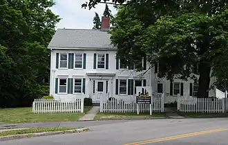 The Isaac Palmer House is located west of downtown Branford, on the north side of Main Street at its junction with Cedar Street. It is a 2+12-story wood-frame structure, with a side-gable roof and clapboarded exterior. It originally had a central chimney, which is no longer visible above the roof line. The main facade is five bays wide, with sash windows arranged symmetrically around the center entrance, each with a projecting cornice. The entrance is flanked by sidelight windows and wide Doric pilasters, and is topped by an entablature and projecting cornice. A two-story ell extends to the right of the main block, and a 20th-century garage is located at the rear of the property.[2]