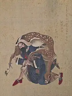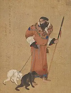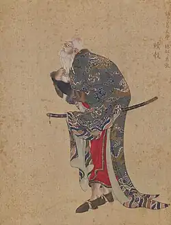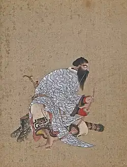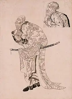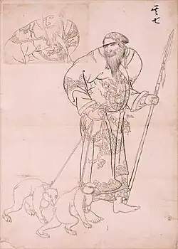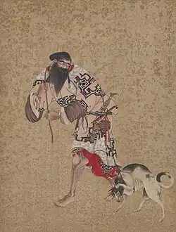 Ishūretsuzō (夷酋列像), also known as or A Series of Paintings of Ainu Chieftains[1]: 5  or Portraits of Ezo Chieftains,[2]: 9  is a series of twelve painted portraits, dating to 1790, of Ainu elders in the aftermath of the Menashi–Kunashir rebellion. They are by the Japanese artist and Matsumae Domain retainer Kakizaki Hakyō (1764–1826). Eleven of the twelve paintings survive, in the collection of the Musée des Beaux-Arts et d'Archéologie de Besançon. A number of preparatory drawings and copies are to be found in collections in Japan. The clothing worn and other accoutrements depicted help cast light on late eighteenth-century connections between the indigenous inhabitants of Ezochi, the Wajin, China, and Russia.[1][3][4] The portrait of Ininkari from the series also represents the earliest known documentation of brown bears (Ursus arctos) with white pelage, the so-called "Ininkari bears" that are to be found on Kunashir (Kunashiri) and Iturup (Etorofu) in the disputed Southern Kurils.[5]