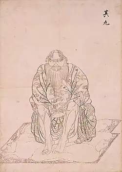 • Ishūretsuzō funpon (夷酋列像粉本) — two sets of preparatory sketches on paper, comprising: (a) thirteen sheets, nine of which are understood to be in the hand of Kakizaki Hakyō (those above of Mautarake, Tsukinoe, Shonko, Ikotoi, Ininkari, Nochikusa, Poroya, Nishikomake, and Chikiriashikai),[13] with two different versions of Ininkari and three different versions of Tsukinoe, but lacking portraits of Ikorikayani and Shimochi, and with that of Chousama understood not to be Kakizaki Hakyō;[13] in Hakodate City Central Library and designated a Prefectural Tangible Cultural Property;[13][14] (b) three sheets, featuring Chousama, an early draft of Ikotoi, and another early draft of Tsukinoe, in a private collection[1]: 47