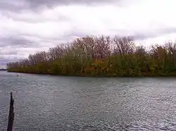 Grassy Island (42°13′21″N 83°08′05″W / 42.22250°N 83.13472°W) is a 72-acre (29.1 ha) island just north of Grosse Ile and west of Fighting Island. The uninhabited island is part of the city of Wyandotte. Originally, the island was much smaller, but it served as a disposal facility for millions of cubic yards of sediments that were dredged from the expanding of the River Rouge. In 2001, Grassy Island was an inaugural addition to the Detroit River International Wildlife Refuge, although access to the island is restricted and difficult.[19]