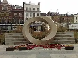 A new memorial was completed in 2007, designed by artist John Maine. His proposal for a twisted stone ring, reminiscent of a wreath, was accepted by a memorial commission, which included representatives from the local Royal British Legion, the Canonbury Society, and representatives from the council.[2]
