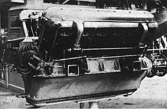 The crankshaft, made of special steel, was supported by a series of 8 bearings, with the insertion in the rear position between the last two of a double bearing and thrust ball bearing, which had the task of supporting the effort of the propeller whether it is mounted in a pulling or pushing configuration.[2]