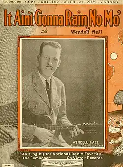 "It Ain't Gonna Rain No Mo'" or "It Ain't Gonna Rain No More" is a folk song first recorded in 1923 by "The Red-Headed Music Maker," the singer and instrumentalist Wendell Hall (1896–1969).[1] Ukulele arrangement on the song was by May Singhi Breen.[2] The recording was a hit in the US and also in Britain, where it was sung during the 1925 FA Cup final by Sheffield United supporters, making it a popular football song of the era.