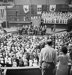 FEI organised and hosted several World Esperanto Congresses (Universala Kongreso, or UK, for short). In 1935, the 27th UK took place in Rome;[19] in 1955, the 40th UK was hosted in Bologna;[19] in 2006, the 91st UK took place in Florence;[20][21] and, finally, in 2023 Turin is going to host the 108th UK.[22][23] On the UEA site one can find a complete list of the congresses hosted in Italy.[24]