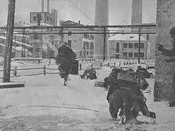The CSIR was sent to the southern sector of the German advance in Ukraine in July 1941. In August, as part of the German 11th Army, the CSIR made its first contact with the Red Army. The CSIR pursued retreating Soviet troops between the Bug River and Dniester River. While the 11th Army conducted the Siege of Odessa, the CSIR was attached to Panzer Group 1. In its early encounters the CSIR was successful, taking a number of towns and cities and creating a favourable impression on its German allies.[3] Its most notable early victory came at the Battle of Petrikowka in September 1941, where the Italians encircled some sizeable Red Army units, inflicting unknown casualties on them and capturing over 10,000 prisoners of war as well as significant numbers of weapons and horses.[2] This cost 291 Italian casualties, 87 killed, 190 wounded and 14 missing.[4] On October 20, the CSIR and the German XLIXth Mountain Corps captured the big industrial city of Stalino (now Donetsk) after determined resistance from the Soviet defenders. Units from the Pasubio Motorized Division captured the neighboring city of Gorlovka, an industrial town of around 100,000 inhabitants, on November 2. While the CSIR did not participate in the siege of Odessa, Italian troops assisted in the occupation of the Odessa area after the city fell on 16 October 1941.[5]