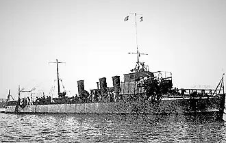 Alpino was a Soldato-class ("Soldier"-class) destroyer of the Italian Regia Marina (Royal Navy). Commissioned in 1910, she served actively in the Italo-Turkish War, operating in the Ionian, Aegean, and Red Seas. During World War I she initially operated in the upper Adriatic Sea, conducting reconnaissance and minelaying operations and supporting actions by motor torpedo boats and aircraft. She subsequently operated in the southern Adriatic and the Ionian Sea, where she was assigned to escort operations and patrolling the Otranto Barrage in the Strait of Otranto.[1] Reclassified as a torpedo boat in 1921, she was stricken in 1928.