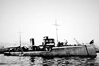Lampo participated actively in the Italo-Turkish War, which began on 29 September 1911 with the Kingdom of Italy′s declaration of war on the Ottoman Empire. At the outbreak of war, Lampo was part of the 2nd Squadron's 1st Division, which also included her sister ships Euro, Freccia, and Ostro.[5] On 31 October 1911, she and the armored cruiser Carlo Alberto bombarded Ottoman-held Fort Hamidje, which had been shelling Italian positions at Tripoli in Ottoman Tripolitania, and silenced its guns.[6] The war ended on 18 October 1912 in an Italian victory.
