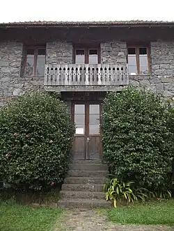 The organization of the farm was simple and practical. A rustic wooden house, sometimes of adobe or stone, divided into a large kitchen where the focolaro (the domestic fire) was, and one more living room, one or two bedrooms, and an attic as storage or additional sleeping quarters. There was usually a basement for a domestic canteen and storage room. Next to the house, there would be a stable, a barn, a pigsty, and a chicken coop. Often the kitchen was located in a separate room from the main body, because of the danger of fire, as it kept burning all day. A vegetable garden was also planted, in addition to the main crops.[13] In the second stage, when the situation stabilized, the rustic houses and pavilions of the beginning were replaced by larger and better-equipped facilities, often with external and internal ornaments, of which an important group of stone, masonry, and wood, in various typologies survives.[3][12]