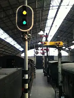 Current practice makes use of light signals of the "searchlight" type on conventional lines, and of the ERTMS cab signalling on high-speed lines.