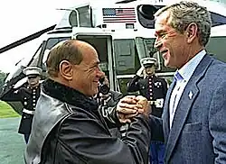 During the 2000s, Berlusconi and his cabinets have had a strong tendency to support American foreign policies,[26] despite the policy divide between the U.S. and many founding members of the European Union (Germany, France, and Belgium) during the Bush administration.[27] Under his lead the Italian Government also shifted its traditional position on foreign policy from being the most pro-Arab western government towards a greater friendship with Israel and Turkey. Italy, with Berlusconi in office, became a solid ally of the United States due to his support in the War in Afghanistan and the Iraq War following the 2003 invasion of Iraq in the War on Terror. Silvio Berlusconi, in his meetings with United Nations Secretary-General Kofi Annan and U.S. President George W. Bush, said that he pushed for "a clear turnaround in the Iraqi situation" and for a quick handover of sovereignty to the government chosen by the Iraqi people. The Italian Armed Forces had some 3,200 troops deployed in Southern Iraq, the third largest contingent there after the American and British forces.[28] Italian troops were gradually withdrawn from Iraq in the second half of 2006 with the last soldiers leaving the country in December of the same year.