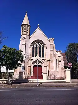 Ithaca Presbyterian Church is a heritage-listed church, located at 100 Enoggera Terrace, in the inner city suburb of Paddington, Brisbane, Queensland, Australia. The land was purchased in 1919 by the New Building Fund Committee of the Presbyterian Church, who collected £8000 for the church's construction. The design was commissioned to leading architectural firm Wilson Architects, who were renowned members of Brisbane's Presbyterian community. Construction commenced in 1927 and the building was formally dedicated and opened on Saturday February 9, 1929.[1]