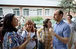 Klympush-Tsintsadze, Colonel Roman Chervinsky and Chervinsky's support group before a hearing at the Shevchenko Court in Kyiv. July 18, 2024