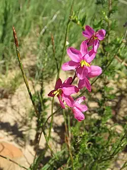 Ixia scillaris, the agretjie kalossie,[2] is a perennial cormous flowering plant in the genus Ixia. It is endemic to a small portion of the Fynbos in the Western Cape. [1]