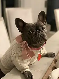 Izzy the Frenchie is a French bulldog, known as an internet celebrity. Izzy was born in northern California and moved with her owner Shane Jordan to the Hamptons in New York. The Mayor of Nashville, Tennessee, in 2020 issued an executive order and proclamation declaring August 26 "Izzy The Frenchie Day" in the city.[1] As of 2021, Izzy had over one million followers on Instagram and currently lives in East Hampton, New York.[2]