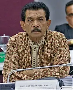 Júlio Sarmento da Costa (20 July 1959 – 24 May 2024), also known by his nom de guerre Meta Mali, was an East Timorese politician and a member of the Democratic Party (PD). From May 2020 to July 2023, he was Minister for the Affairs of National Liberation Combatants, serving in the VIII Constitutional Government of Timor-Leste led by Prime Minister Taur Matan Ruak.