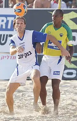 Júnior Negão battling for the ball versus Israel in 2008.