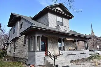 The J.N. Wallace House in Boise, Idaho, is a 2-story, shingled Colonial Revival house designed by Tourtellotte & Co. and constructed in 1903. The first floor features a veneer of random course sandstone, and shingles of various shapes decorate the wraparound porch and the second floor. Deep, pedimented gables with dormer and dimple windows characterize the roof. Outer walls on the porch and second floor are flared. The house was added to the National Register of Historic Places in 1982.[2]