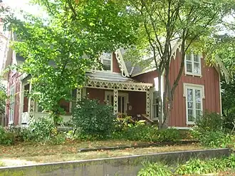 The J. Newton Conger House is a historic house located at 334 North Knox Street in Oneida, Illinois. P. G. Hubbard had the house built in 1860; four years later, it was sold to J. Newton Conger, a livestock shipper and prominent local citizen. The house has a Carpenter Gothic design described as the best example of the style in Knox County. The front porch and the roof's steep gables feature gingerbread trim along the edges, a characteristic feature of the style. The house's tall and narrow windows have decorative hat-like surrounds along the top and upper sides.[2]
