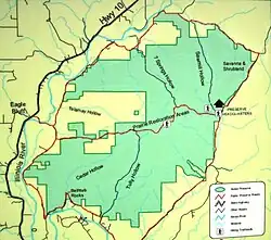 The headquarters building is staffed only on weekdays. There are no facilities other than at the headquarters building. No hunting, fishing, or camping is allowed on the preserve.[8]