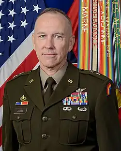 From April 2007 to November 2011, he served as S-3 of the 42nd Combat Aviation Brigade in Latham.[12] In 2008, he graduated from the United States Air Force's Air War College course.[12] He next assumed command of the 642nd Aviation Support Battalion in Rochester, which he led from November 2011 to November 2014, including temporary active duty during the National Guard's 2012 response to Hurricane Sandy, as well as deployment to Kuwait for Operation Enduring Freedom.[4][12] James commanded the 42nd Combat Aviation Brigade in Latham from November 2014 to June 2019.[12] In 2015, he graduated from the United States Army War College as a Distinguished Graduate[4] with a master of science degree in strategic studies.[12]