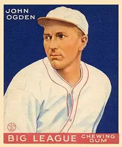 John Mahlon Ogden (November 5, 1897 – November 9, 1977) was an American Major League Baseball pitcher. He played five seasons in the majors, between 1918 and 1932, for the Cincinnati Reds, New York Giants, and St. Louis Browns. He played several seasons with the then minor league Baltimore Orioles, became a baseball executive and a scout after his retirement and is a member of the International League Hall of Fame.