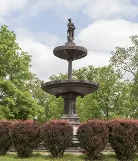 Jackson Memorial Fountain is a historic fountain located at the entrance to City Park at Parkersburg, Wood County, West Virginia. It was built in 1905 and is a cast iron structure that originally had three tiers. The second tier is topped by Parkersburg's Lady of the Lake statue. It features elaborately sculpted and decorated basins and pedestals. The fountain is dedicated to the locally prominent Jackson family, that included General John Jay Jackson and his sons Federal Judge John Jay Jackson, Jr., Governor Jacob B. Jackson, and Circuit Judge and Congressman James M. Jackson.[2]