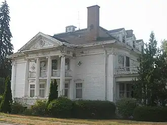 Jacob Straus House, also known as the Louis Levy House, is a historic home located at Ligonier, Noble County, Indiana. It was built in 1898–1899, and is a two-story, frame dwelling with Neoclassical and Colonial Revival style design elements. It has a truncated hipped roof with dormers. The front facade features a two-story pedimented portico with Ionic order columns and pilasters. Also on the property is a contributing complementary garage.[2]: 2 It is open to visitors by the Ligonier Historical Museum.