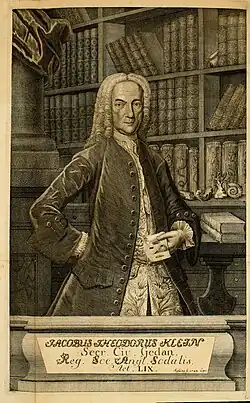 - ^ a b c Geus, Armin (1977). "Klein, Jacob Theodor". Neue Deutsche Biographie 11 (in German). pp. 740–741. Retrieved 2018-05-03.