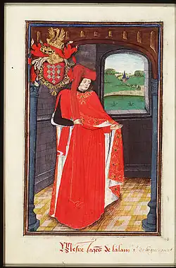 As a child, Jacques was well-educated since literature was cultivated in Burgundy at the time of his youth. Therefore, he was learned in both Latin and French, and accomplished in literary work. But it was in warlike sports that he excelled the most. At a young age he went to the court of Philip the Good to serve and eventually become a knight.[2] In 1436, he was sent by the Duke of Burgundy with 600 fighters to serve the King of France under the command of Marshal Jean de Villiers de L'Isle-Adam.