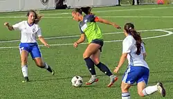 She did not play in the 2017 season, returning to the team in 2018.[22][23] In the first game of the season on September 8, 2018, she broke the single-game OCAA scoring record, scoring nine goals in a 16-0 victory over the Lambton Lions.[24][25][26] For the 2018-19 season, in addition to being named Fanshawe's Athlete of the Year,[27] she was named an OCAA All-Star, a CCAA All-Canadian for the third time, and the OCAA Women's Soccer Player of the Year, after finishing as the league scoring champion with 30 goals,[28][29] breaking the OCAA single-season regular season goals record,[30][31] as well as being named the CCAA Women’s Soccer Player of the Year.[32][33][34] She was also named the OCAA Female Athlete of the Year, becoming the first Fanshawe woman to win the honour.[35][36][37] With Fanshawe, she helped them win their first OCAA championship title in nine years, earning Tournament MVP honours,[38] as well as helping them win bronze at the CCAA nationals.[39]