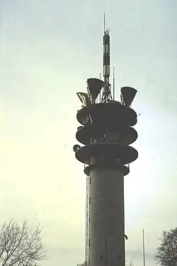 The Jakobsberg Telecommunication Tower (known locally as Langer Jakob or "Long James") was built on the site of the old Bismarck Tower from 1974 to 1978, also in concrete and steel. It is a 142 m high transmission tower (standard tower).