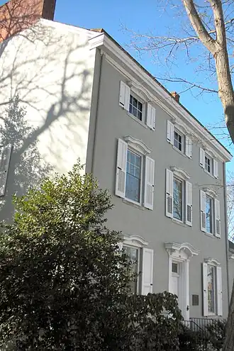Built circa 1844, this historic structure is a 2+12-story, stuccoed townhouse with a medium gable roof. It has a 1+12-story rear wing with a high gable roof and end chimney. The house features eyebrow windows and marble entrance steps. It was built for Henry Chapman, who served in the U.S. House of Representatives.[2]