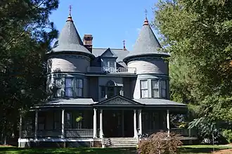 James A. and Laura Thompson Long House is a historic home located at Roxboro, Person County, North Carolina. It was built in 1896, and is a three-story, rectangular, Queen Anne style frame dwelling with a rear ell and enclosed rear porch. It features round towers with conical roofs at the front corners, a one-story wraparound porch with Doric order columns, and a hipped slate roof with dormers. The house was subdivided into apartments in the 1940s. Its builder, J. A. Long (1841–1915),[2] is considered the "founder of modern Roxboro."[3]