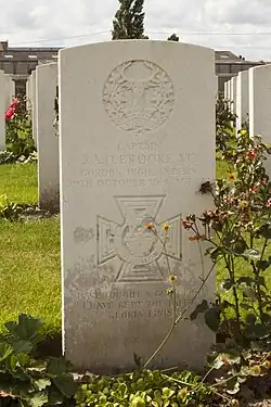 Captain Brooke's remains were interred at Zantvoorde British Cemetery (CWGC), Zonnebeke, Belgium (near Ypres).[5] His name also appears on the family grave at Springbank Cemetery, Aberdeen.[6]