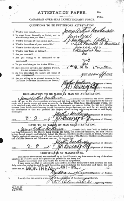 Enrollment papers of James Arthur Mathewson, former Treasurer of Quebec