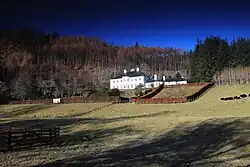 As with many other estate houses in Scotland, Balfour family ownership of Whittingehame House ended in the 20th century. Arthur and Gerald lost a lot of money in a series of poor investments, particularly in their efforts to develop peat processing as a green alternative to coal-mining.[10] In the 1930s, death duties forced the mothballing of the house and sale of its contents.[32] The building was leased for various purposes before being sold in 1963 to become a residential school,[33] and has since been converted into apartments.[32][34] The older Whittingehame Tower has been restored and remains the residence of the Earls of Balfour,[35] descendants of James Balfour.